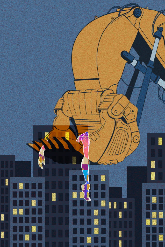 The image to the left is the first ideation for a book in development. The illustration symbolizes one aspect of gentrification within the black communities like neighborhoods being replaced by upscale businesses and luxury housing.